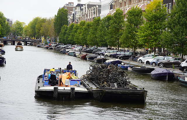 But there is more than dirt in Amsterdam's waterways, one of those things is very specifically Dutch. Each year, between 12,000 and 15,000 bikes are pulled out of the canals by barges with cranes mounted on them. Locally this cleaning process is known as bike fishing.